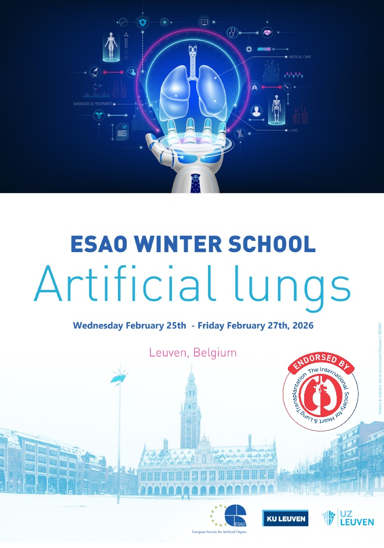 The ISHLT has endorsed the European Society for Artificial Organs (ESAO) Winter School, taking place 25-27 February in Leuven, Belgium.